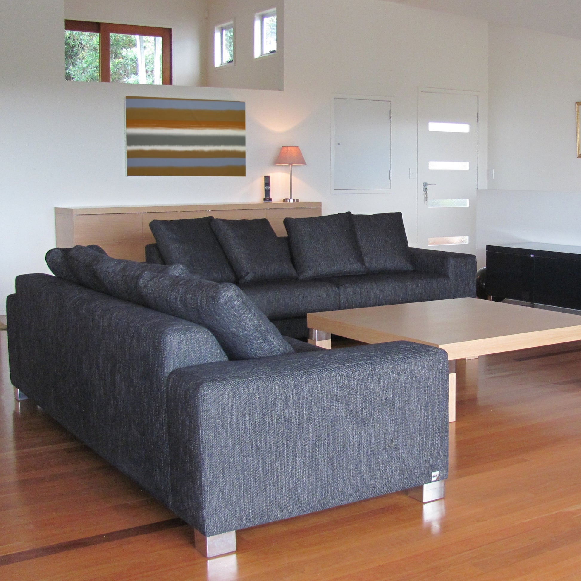 Solid seasoned hardwood internal frame. Premium webbing used with Enduro polyurethane foam and polyester wadding. Cushions are wrapped in calico. Feather and fibre mix back cushions. Mirror finish stainless steel or solid timber legs. Available upholstered in a selection of fabrics and leathers.